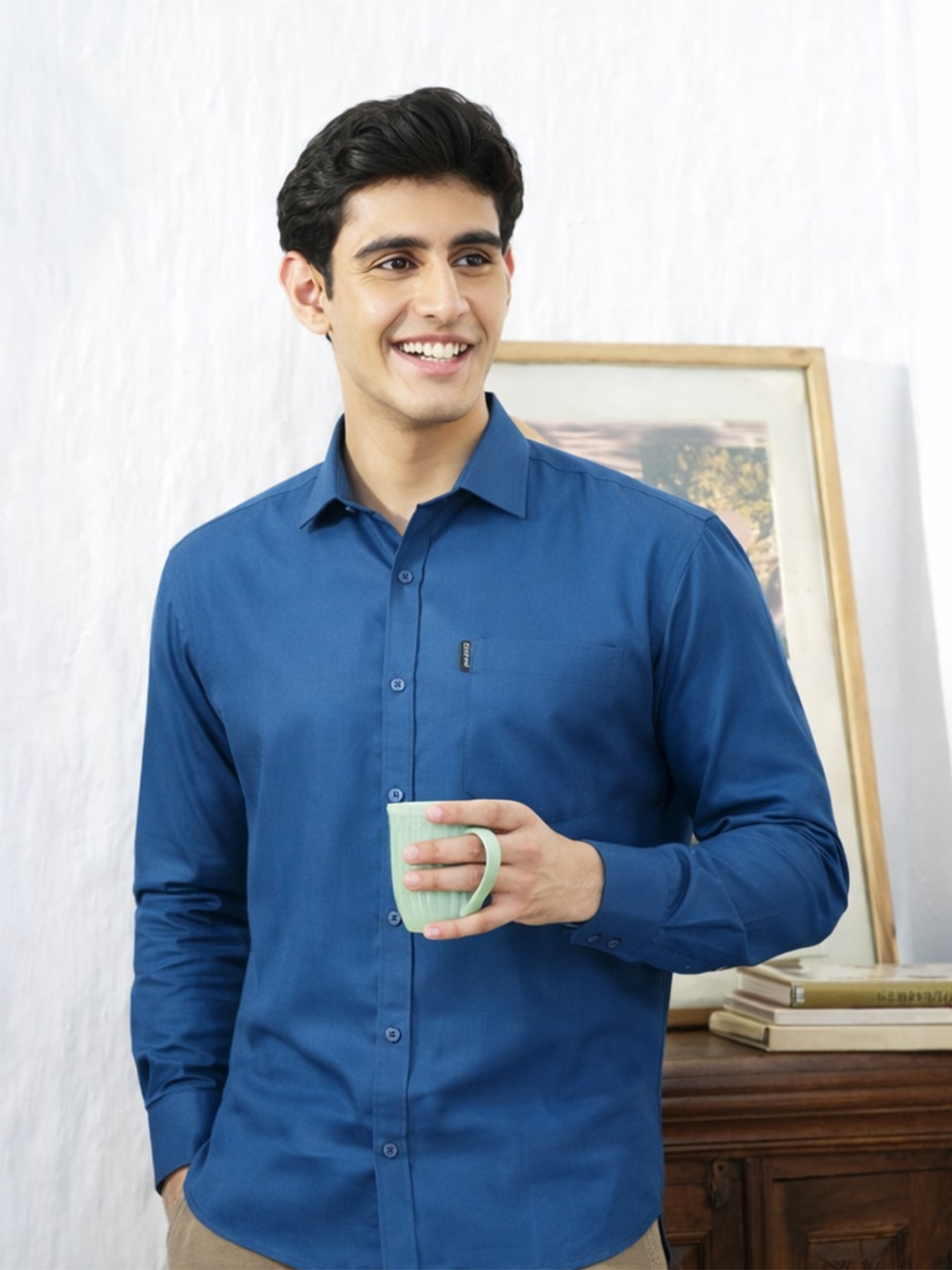 Men Regular Fit Solid Spread Collar Formal Shirt